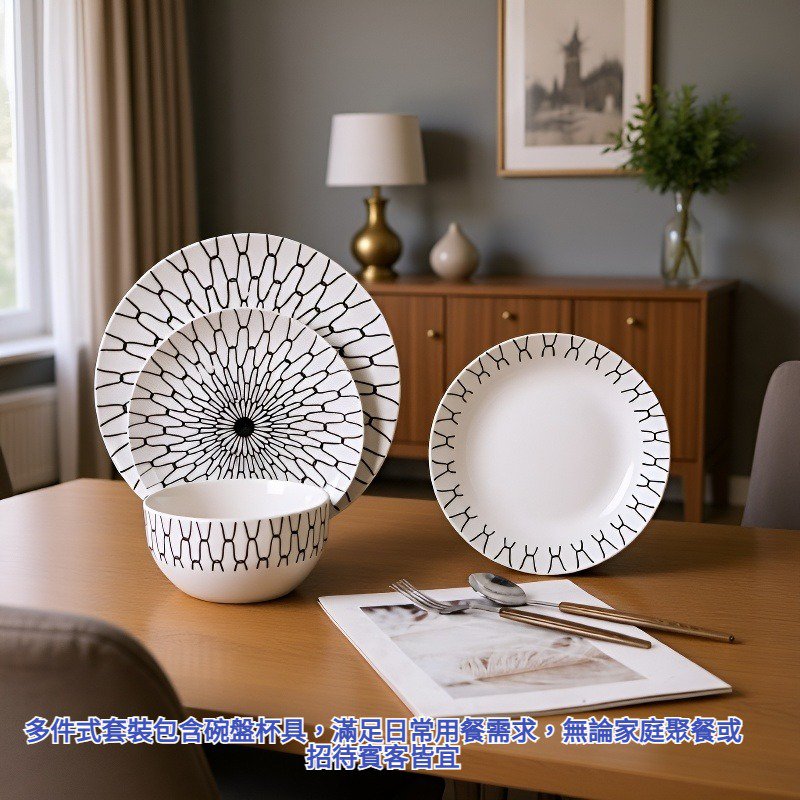 ● 多件式套裝包含碗盤杯具,滿足日常用餐需求,無論家庭聚餐或招待賓客皆宜。